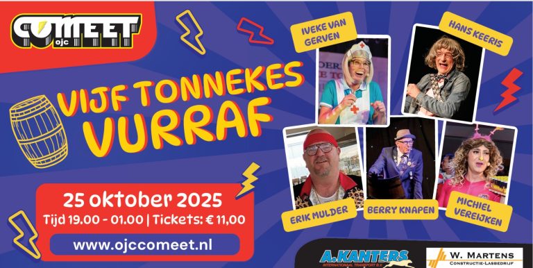 Tickets voor activiteiten van OJC Comeet zijn eenvoudig online verkrijgbaar via ticketcrew.nl of klik op tickets bij agenda.