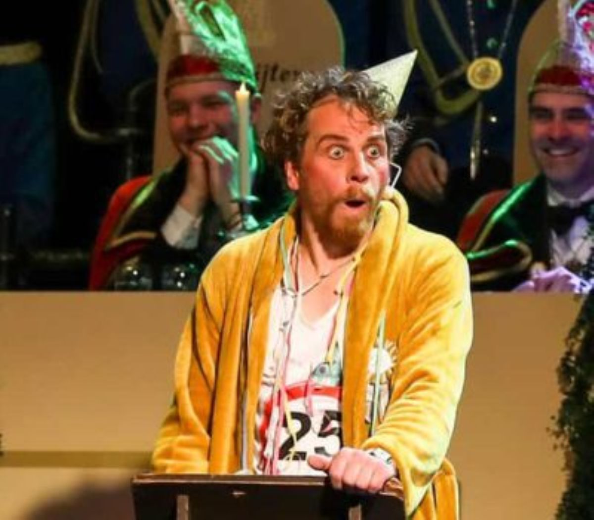Er staat altijd iemand van de vrijwilligers op de gang. Je kunt ook later nog naar binnen, maar dan mis je natuurlijk een deel van een groot feest!